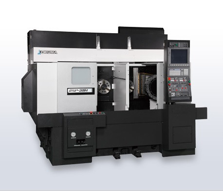 Equipped with left and right opposed spindles and upper/lower turrets, enabling complete machining on a single machine